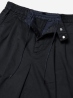 素材は、上品な光沢と絶妙なストレッチ性を兼ね備えたしっかりとしたツイル生地を使用しています。後ウエストは、ひらゴムを使用したシャーリング仕様になっており、フィット感を高め、スピンドル付きなのでベルトレスの着用も可能です。また、フロントに昔のイングランドラグビーショーツのディテールを取り入れた比翼仕様になっています。